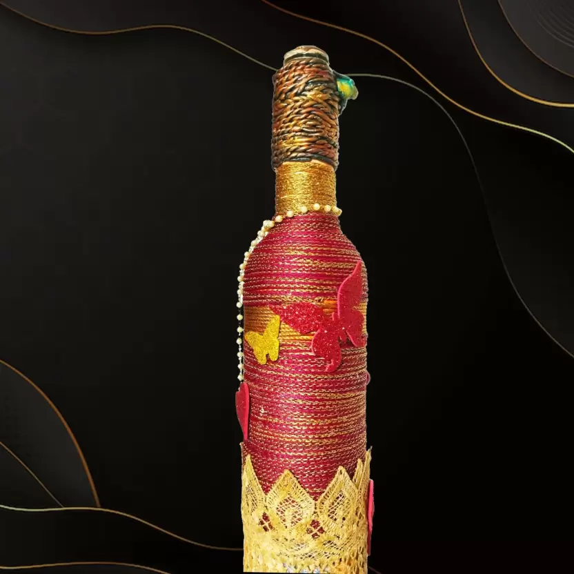 Introducing the Long Glamor Decorative Bottle, a lavish addition to elevate your home decor with its luxurious allure. Crafted from a repurposed wine bottle, this piece embodies sustainability while exuding opulence.